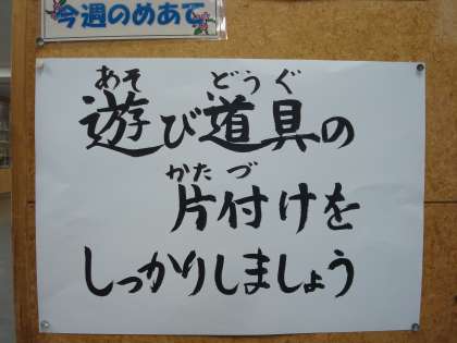 今週の目標は「遊び道具の片付けをしっかりしましょう」になりました。