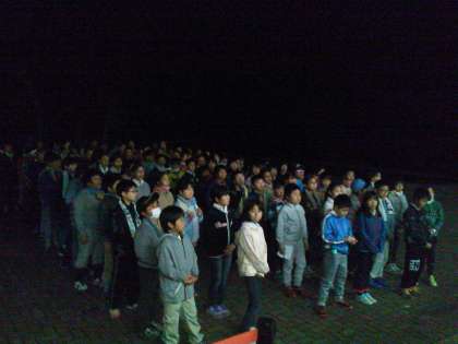 これからナイトハイクに出発します。あたりは真っ暗です。