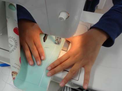 ミシンの使い方を学習し、クッションの制作が始まりました。手順を確認しながら、丁寧にミシンを扱うことができました。