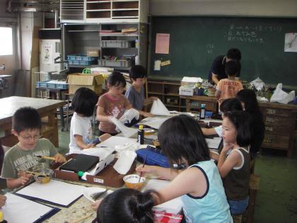 図工の四宮先生が講師です。四宮先生は、日本画が専門です。芸大で修士から博士課程まで学んだプロの先生です。