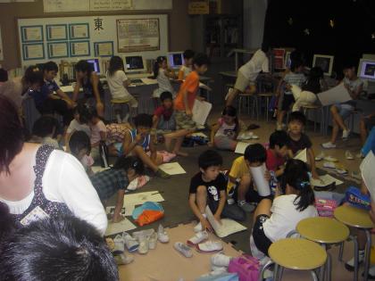 パソコンに向かっている子、スクリーンを見ている子、プリントに向かっている子様々です。星と月というちょっとロマンに満ちた題名の講座です。宇宙にちょっと興味を持つ子どもたちが増えるかもしれません。