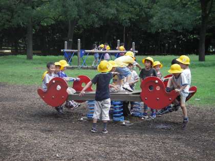 14日、1年生は砧公園に行きました。昨日交通安全教室で道路の歩き方を勉強したので子どもたちは約束を守りしっかり歩いていました。