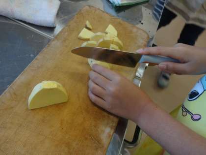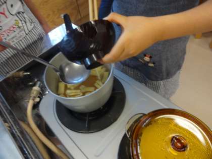 ごはんと班ごとに異なるオリジナルみそ汁の調理を行いました。どの班も実の切り方、入れる順番を工夫しながらおいしいみそ汁が作れました。鍋で炊くごはんも火加減を調節しながら、ふっくらやわらかいごはんが炊けました。学習したことを家庭実践に生かしてほしいと思います。