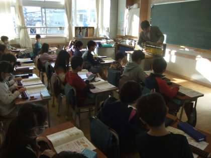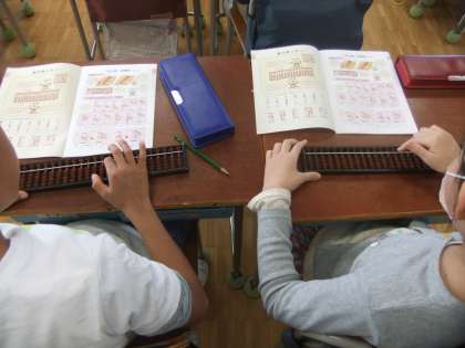 東京都珠算教育団体連合会より、山岸先生をお招きしてそろばん教室の授業をしていただきました。ていねいに指導していただきました。子ども達は、「そろばんすごい!」「とても便利!」と、感動していました。