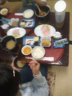 2日目の朝ご飯です。今の子どもたちは家庭では正座をして食事をすることはないようです。椅子、テーブルで食事をしているようです。あぐら、ぺちゃんこ座り、立て膝で食事です。正座をして食べている子の姿が美しく見えます。生活の変化で人の動きは変わることがよく分かります。