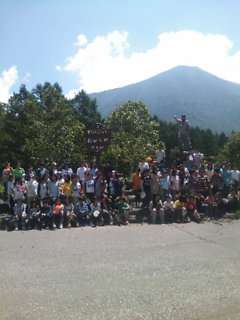 戦場が原の赤沼で記念撮影です。背景に男体山がくっきりと映っています。