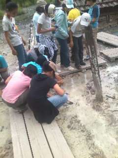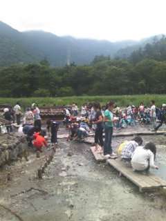 小田代が原ハイキングを終えて赤沼からバスで湯元源泉にきました。地面から温泉がわきだしています。硫黄の匂いがします。