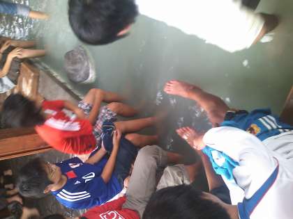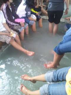 源泉を見学したあとは足湯です。たくさん歩き頑張った足を温泉で疲れを癒します。