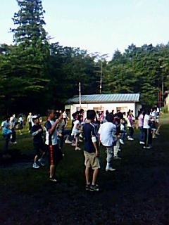 朝の体操です。健康観察では、熱のある人はいません。集合時間をみんな守って元気に朝のスタートです。