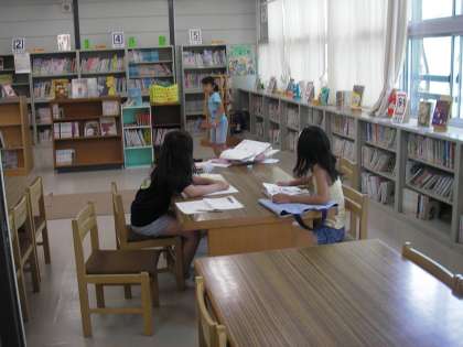 外は暑いですが、図書室はエアコンが効いておりとても涼やかです。ゆっくり本を読むにはとてもよい環境です。