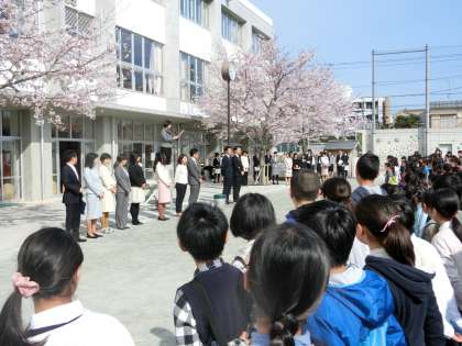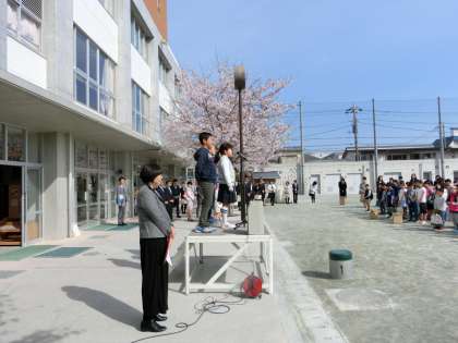 校長先生が新しく着任した先生方を紹介した後に、新しい担任の先生を発表しました。6年生の代表児童の言葉はとても立派でした。
