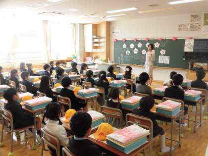 入学式後に、担任の先生と教室で顔合わせをしました。
