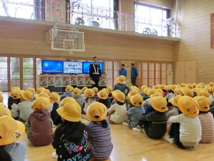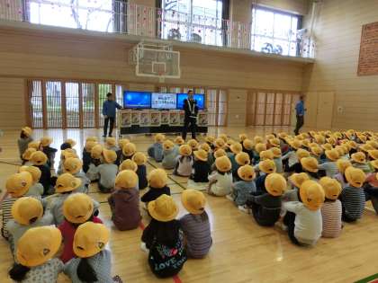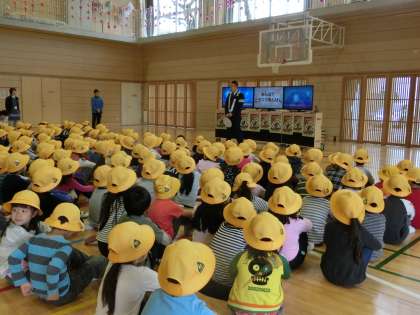 1年生の交通安全教室がありました。体育館で警察や交通安全協会の方からお話を聞きました。みんなとてもいい姿勢で聞いていました。