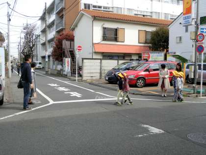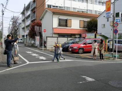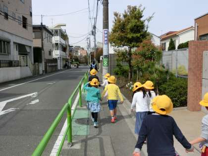 友達と手をつないで学校の近くの道路を歩きました。道の途中には多くの保護者の方が見守ってくださいました。とてもありがたかったです。