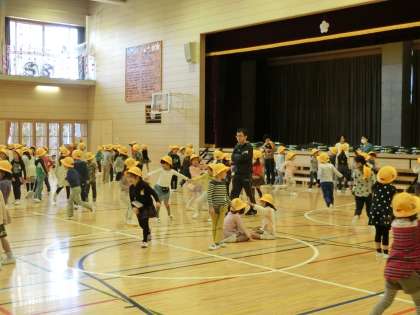 登校してくると6年生に見守られて昇降口から教室まで行きました。耳鼻科検診では校医の先生に診てもらいました。中休みは体育館で元気に遊びました。
