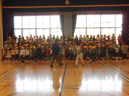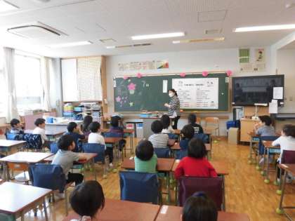 3時間目に1年生を迎える会の出し物の練習をしました。整列するのがとても上手になりました。4時間目にはじめて自分の名前を書きました。
