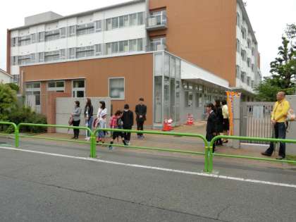 今朝は1学期の「おはようコミュニケーション」が行われました。ようがの学び舎3校の代表児童・生徒や教職員、保護者が通学路に立って「おはようございます。」と大きな声で挨拶をしました。