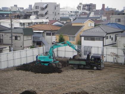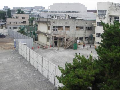 プールの解体が終わり、工事は中断されていましたが、今日から重機が入り仮設校舎建築に向けて工事が始まりました。