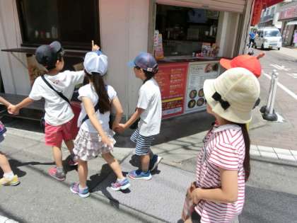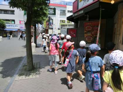 2年生は用賀の町について調べて発表する学習に取り組んでいます。今日は、学習の見通しをもつために下見をしてきました。次は、詳しく知りたい店に行ってインタビューをしてきます。
