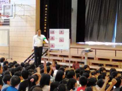 本日、2時間目と3時間目に玉川警察の方をお招きして、本年度のセーフティ教室を行いました。2時間目は1〜3年を対象に連れ去り防止をテーマにDVDを見たり、実際に逃げる方法などを確認しました。3時間目は4〜6年を対象に健全育成についてお話を伺いました。合間の中休みには保護者・地域の方々と警察の方を交えて、児童の安全について意見交換会を行いました。