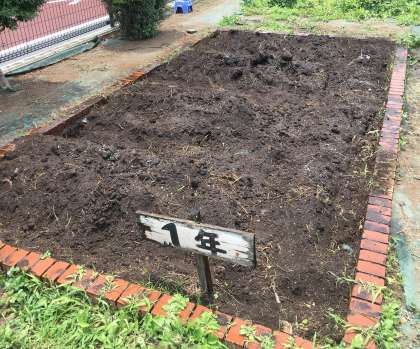 第2校庭にあるフラワーランドの準備が整い始めてきました。土を耕し、肥料をまき、畝ができました。これから、1年生が種をまき、水やりの世話をします。