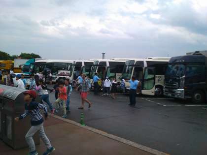 最初の休憩場所の三芳PAに到着しました。小雨もようです。