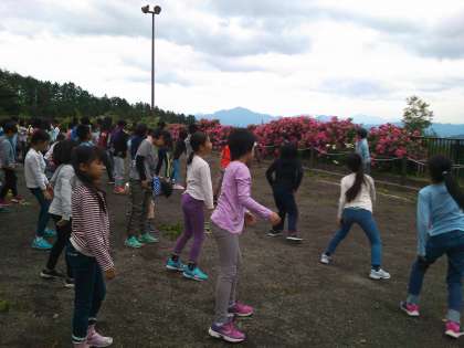 「むらのにわ」で朝会です。風が冷たいです。