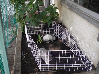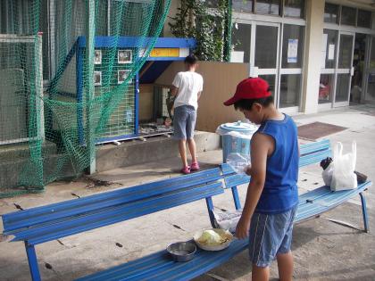 夏休み中も毎朝8時頃になると飼育委員の子どもたが登校してきます。うさぎの世話をするためです。うさぎを運動させ、えさをやり、うさぎ小屋を掃除します。