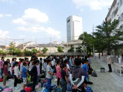 学校に到着して帰校式が始まりました。おかえりなさい!