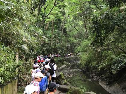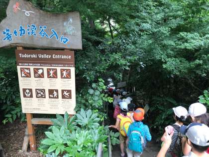 渓谷に下りると空気が冷んやりしました。地面が濡れているので慎重に歩きます。