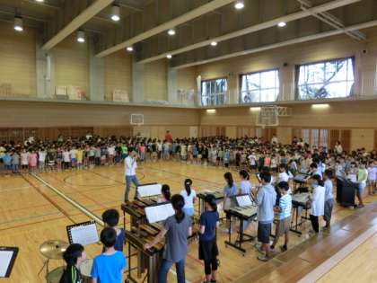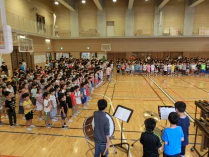 音楽朝会で「風になれ」を歌いました。曲の調子にふさわしい歌い方で歌いました。じめじめした梅雨の朝にさわやかに気分になりました。