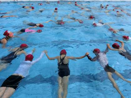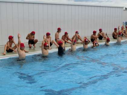 友達と手をつないでプールにきれいな花を咲かせました。みんながしっかり浮くことができなければ咲きません。その後は、けのび、バタ足、クロールなどの練習をしました。今年も安全に気を付けて1人1人が泳力を高められる水泳指導をしていきます。