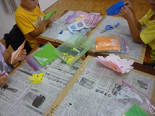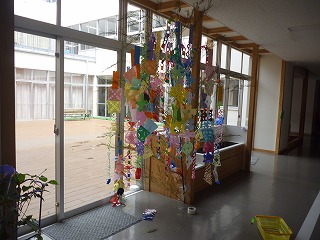 1年生は笹をいただき、一人一人の願いが願いを込めた短冊と飾りを作りました。1年生の願いがかないますように・・・。