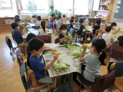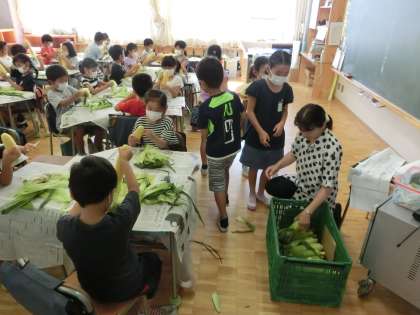 1人1本ずつ配られて皮をむきました。みんなが食べやすいようにきれいに剥きました。