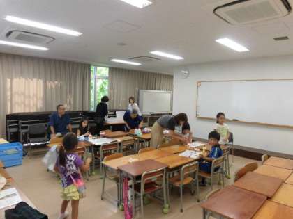 7月21日の午後は、泉の家の方々が講師をしてくださり、会議室でフェルトアクセサリーとミサンガづくりがありました。みんな集中して編んでいました。完成したミサンガを嬉しそうに見せてくれた子もいます。