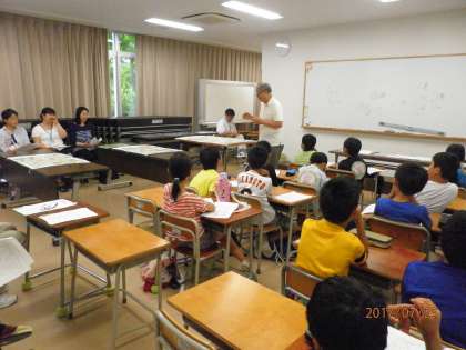 「用賀の歴史を知ろう」では、用賀の町や歴史について、年表や昔の地図をもとにお話を伺いました。今まで知らなかったことを知って、もっともっと自分たちの町を好きになったことと思います。