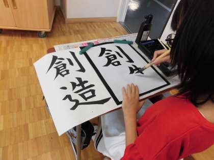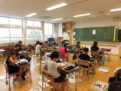 “字が上手になる3つのポイントは?”参加したみんなでポイントを確認しながら、静かな空間で字を書くことを楽しみました。自分の名前を丁寧に書いたり、学年ごとに違う手本の中から、自分の書きたい字を選んで作品を作ったりと、集中して活動しました。あっという間の1時間半でした!