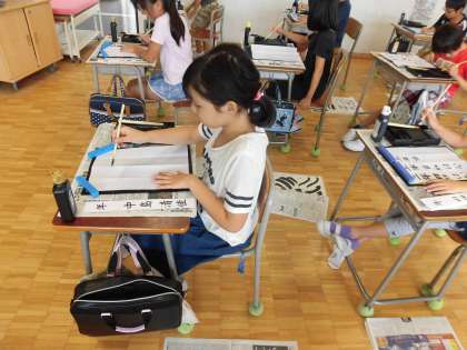 その後は各学年に合わせた字を書いて、書道に親しみました。