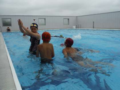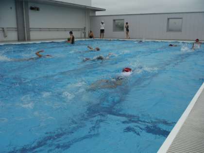 夏休みの水泳指導も前半最終日。気温も低く、曇り空ですが、多くの児童が集まりました。後半の水泳指導でも多くの参加を待っています!!