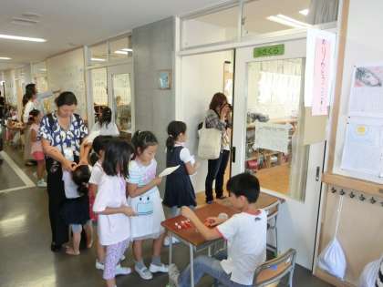 今日はみんなが楽しみにしていた子ども祭りの日。楽しみのあまりいつもより少し早めに登校してくる子どももいました。この日のために頑張って準備してきた子どもたち。たくさんのお客さんが来てくれてとてもうれしそうでした。保護者や地域の方も大勢参加してくださって盛り上がりました。材料集めなどもご協力いただきましてありがとうございました。写真は2年生のお店の様子です。