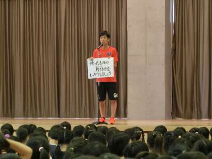 今朝の校長先生のお話のテーマは「言ってはいけない言葉」でした。校長先生自身の幼少期の体験談を基にして相手のことを考えない軽率な発言で相手はもちろんのこと、自分自身も一生後悔することがあるので気を付けましょうという話でした。週番の先生の話は「使ったものの片付けをしっかりしましょう。」でした。次に使う人のことを考えて片付けることが大切です。学校生活を通して、自分も相手も気持ちよく生活するための想像力を身に付けてもらいたいです。
