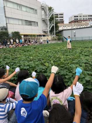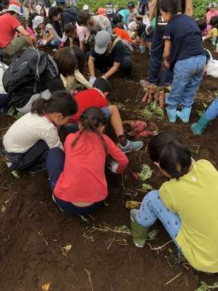 そして、畑の土を掘り、サツマイモを探しました。土の中にあるため、なかなかサツマイモに出会えない子もいましたが、たくさんのサツマイモを収穫できました。