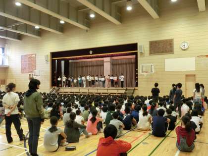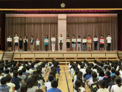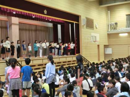 今朝は後期委員会のメンバーを全校の子どもたちに紹介しました。代表委員会の委員長をはじめとした役員と各委員長が仕事内容や意気込み、みんなへのお願いを発表しました。委員長以外の子どもたちは、自分の委員会が紹介されたときにその場に立って顔見せしました。後期委員会のメンバーにも学校のために自分たちで工夫して楽しく活動する姿が見られることを期待しています。