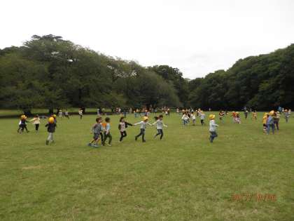 砧公園に到着したら、1年生全員で「学年遊び」をしました。
