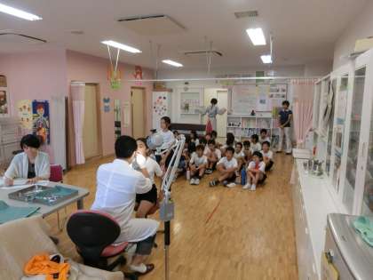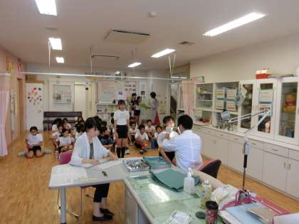 春と秋に歯科検診を行っています。約750人の子どもたちが歯科医の小島先生に診ていただきました。「8020」運動をご存じでしょうか。80歳で自分の歯を20本残そうというものです。歯の健康状態が保てないと栄養が上手く摂取できなくなることがあります。子どもたちには是非健康な歯を保ってほしいものです。