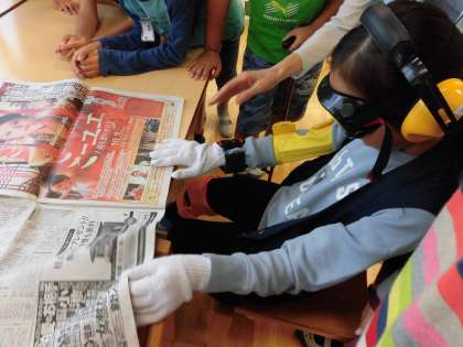 おもりの重さに体が前傾してしまう子や、新聞を興味深そうに見る子など、一つ一つの事を真剣に取り組む姿がみられました。