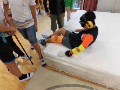 学習後には「すごく大変なんだと思った」「起き上がったり段を越えるのが大変だった」と感想を交流することもできました。