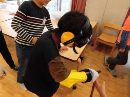 周りにいた子たちは、言葉かけをしながら様子を見守ったり、装具を身につける手伝いをするなど協力することもできました。