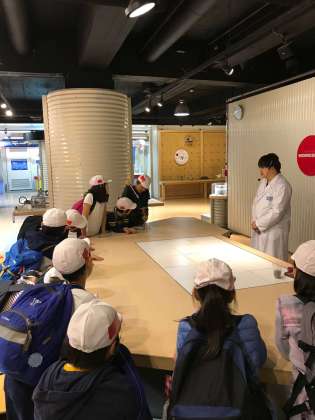 予定よりも早く科学技術館に到着して早速色々なブースを楽しんでいます。