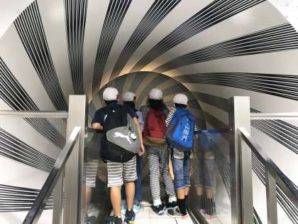 5階が子どもたちに1番人気があります。大きなシャボン玉や空気砲、錯覚トンネルなど全身で体験できるものがたくさんありました。